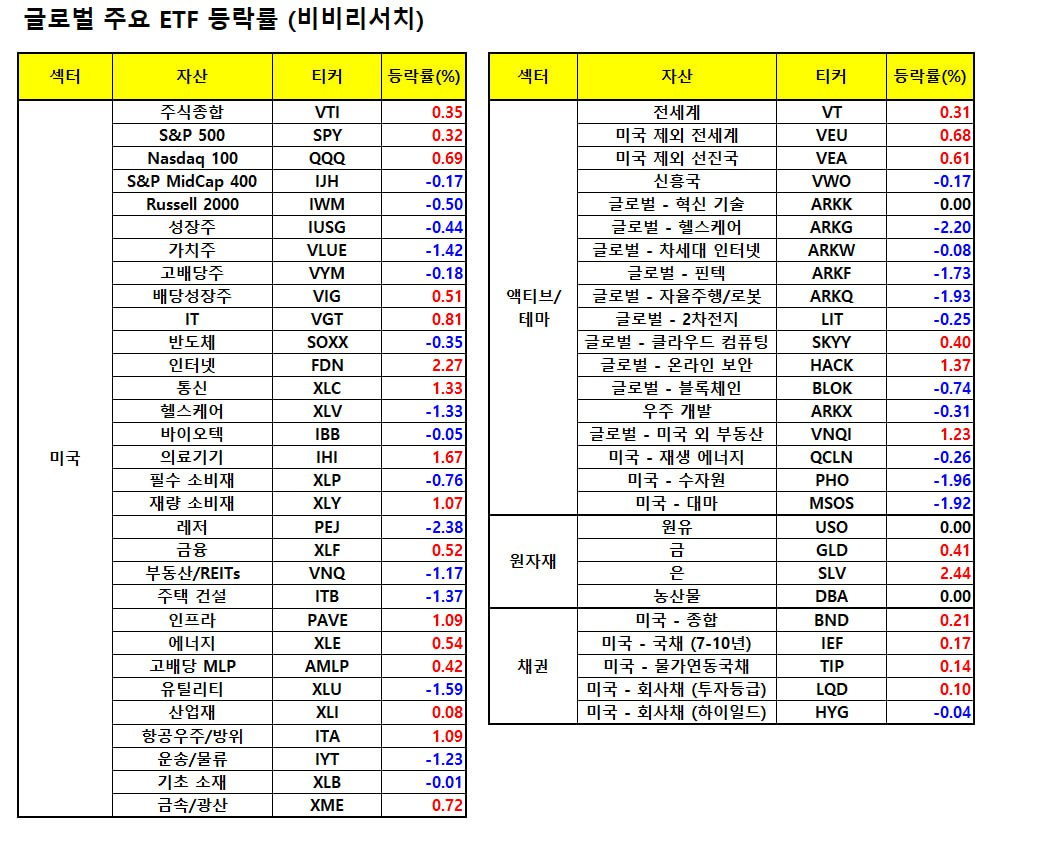 • 메타 플랫폼(+1.21%), 아마존(+1.21%), MS(+0.53%)등 여타 대형 지술주도 견조한 모습
