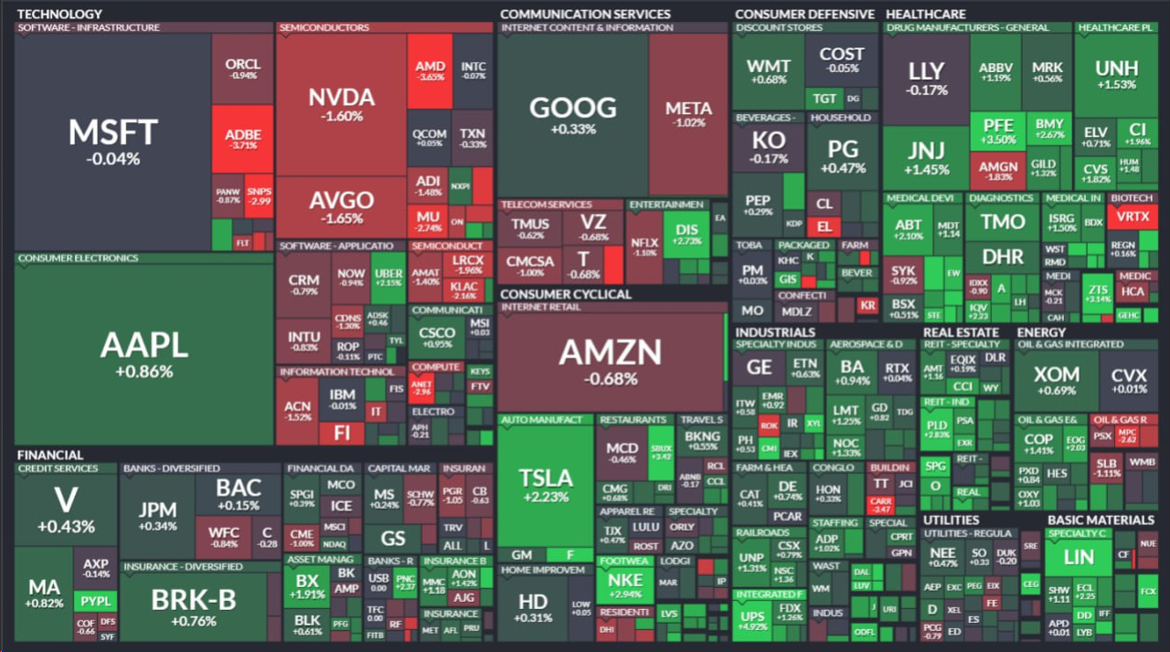 • GE헬스케어테크 (GEHC, +12%)는 시장 예상을 상회한 실적을 발표한 후 급등하였고